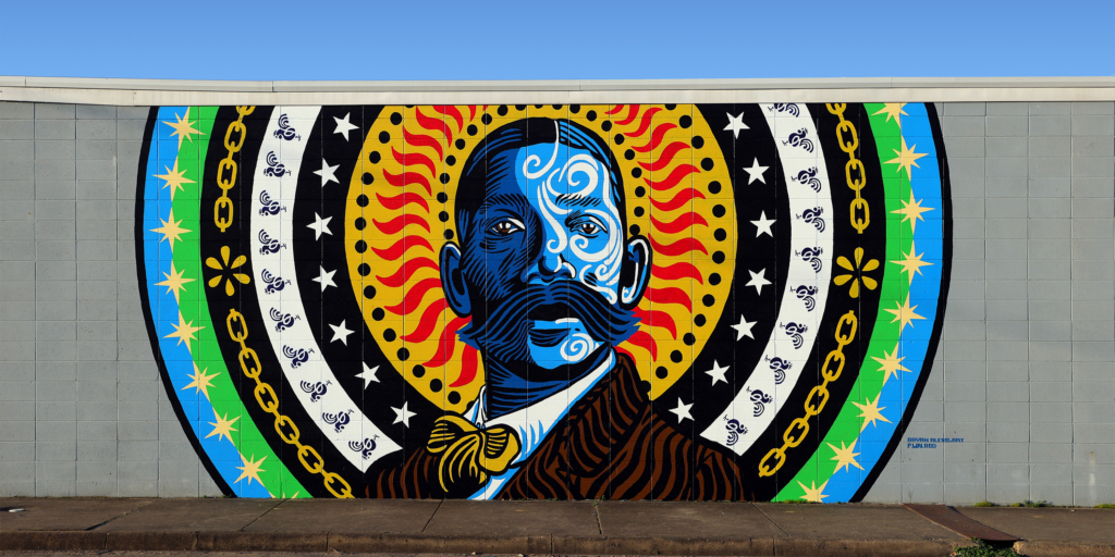 I am a muralist. I was a graphic designer for most of my nearly 30 year career, and still am, but since 2015 I’ve painted over thirty large public works of art in Arkansas. Through this document I want to introduce you to the creative work I have engaged in over the last 8 years. Mural painting is a powerful ways to connect a community to art, and with every mural that I create I focus on how those connections should manifest. Just the process of painting in public engages the community in a very direct way. People walk up, converse, and ask questions about the artwork. They will drive by, honk, and give a thumbs up (which I refer to as a LIVE Instagram like.) Parents will bring their children to watch, and I even let them paint sometimes. The mural installation is an event that let’s the community feel a part of the artwork that is displayed in the places that they live. My goal with each mural is to carefully and thoughtfully connect the visual content to it’s location.